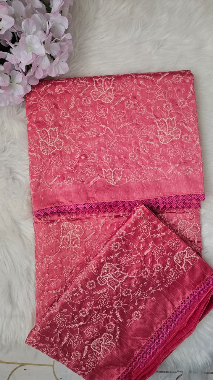 A cutwork saree is a traditional saree design characterized by intricate patterns created using the cutwork embroidery technique. This technique involves cutting out specific portions of the fabric and embellishing the edges with embroidery to create a lace-like effect.