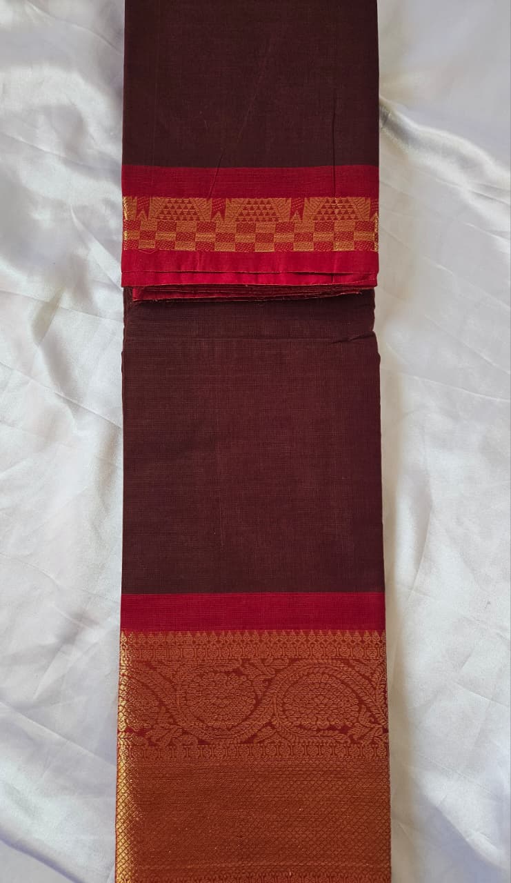 Kanchi Cotton Saree – Brown with Maroon