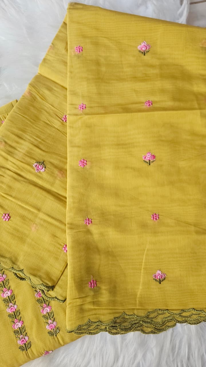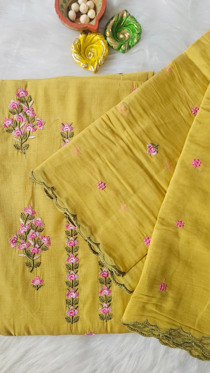 Craft your own statement look with this Mul Chanderi Embroidered Unstitched Suit, designed for women who love customization with a touch of tradition. The luxurious mul chanderi fabric drapes beautifully, while intricate embroidery enhances its charm. Perfect for tailoring your dream outfit for festive and traditional occasions.