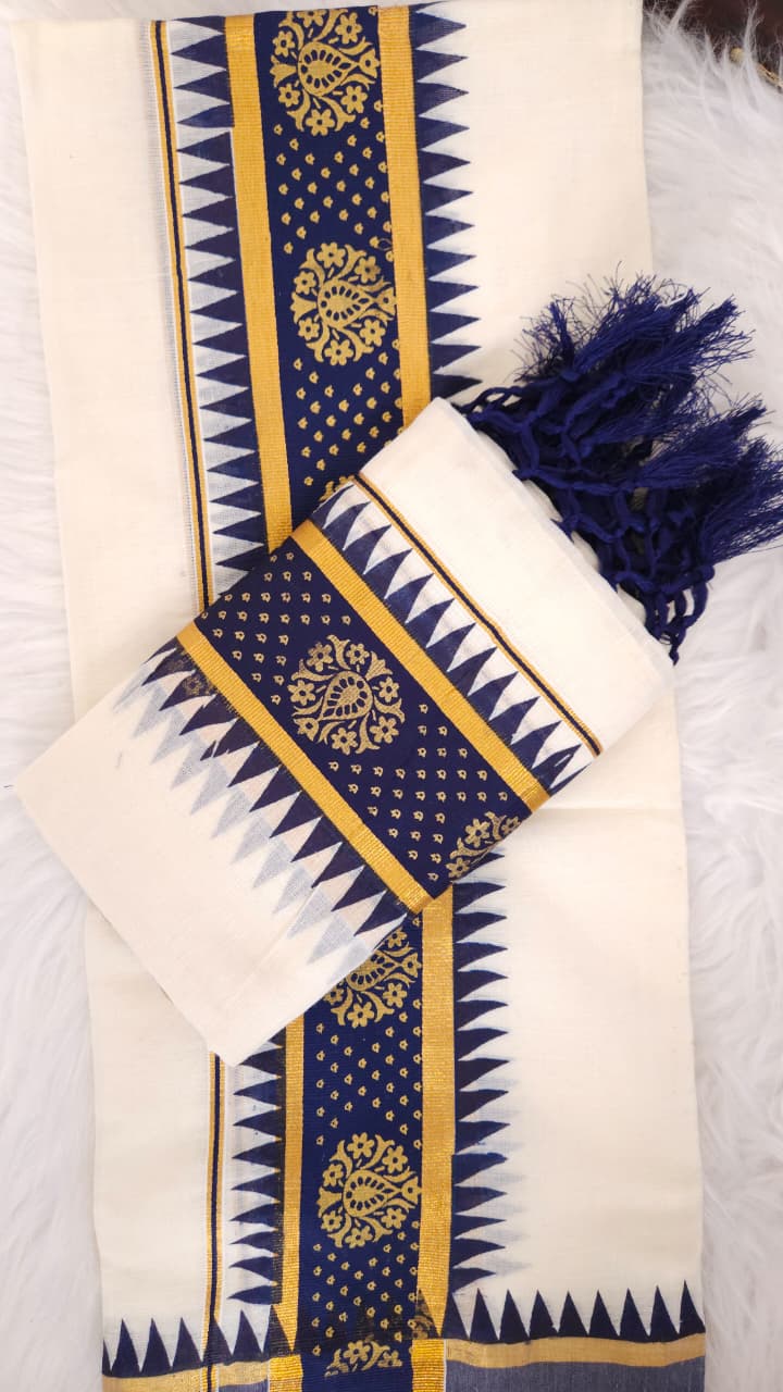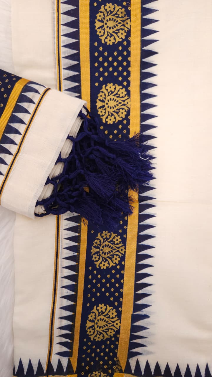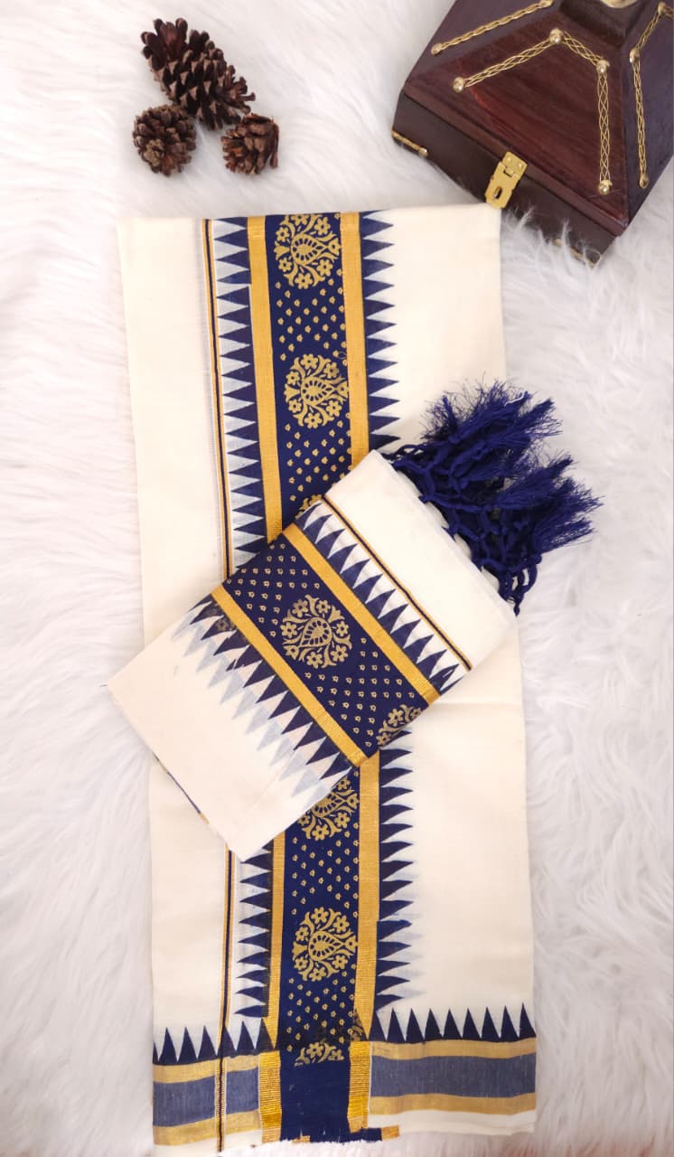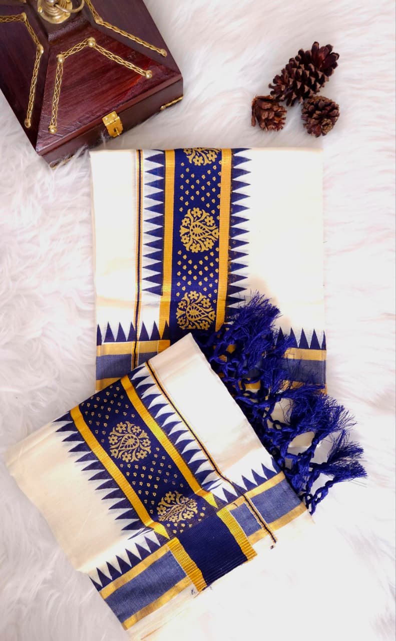 Navy blue and Golden zari border Set mund
