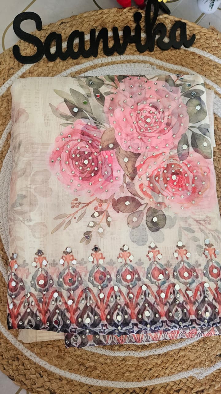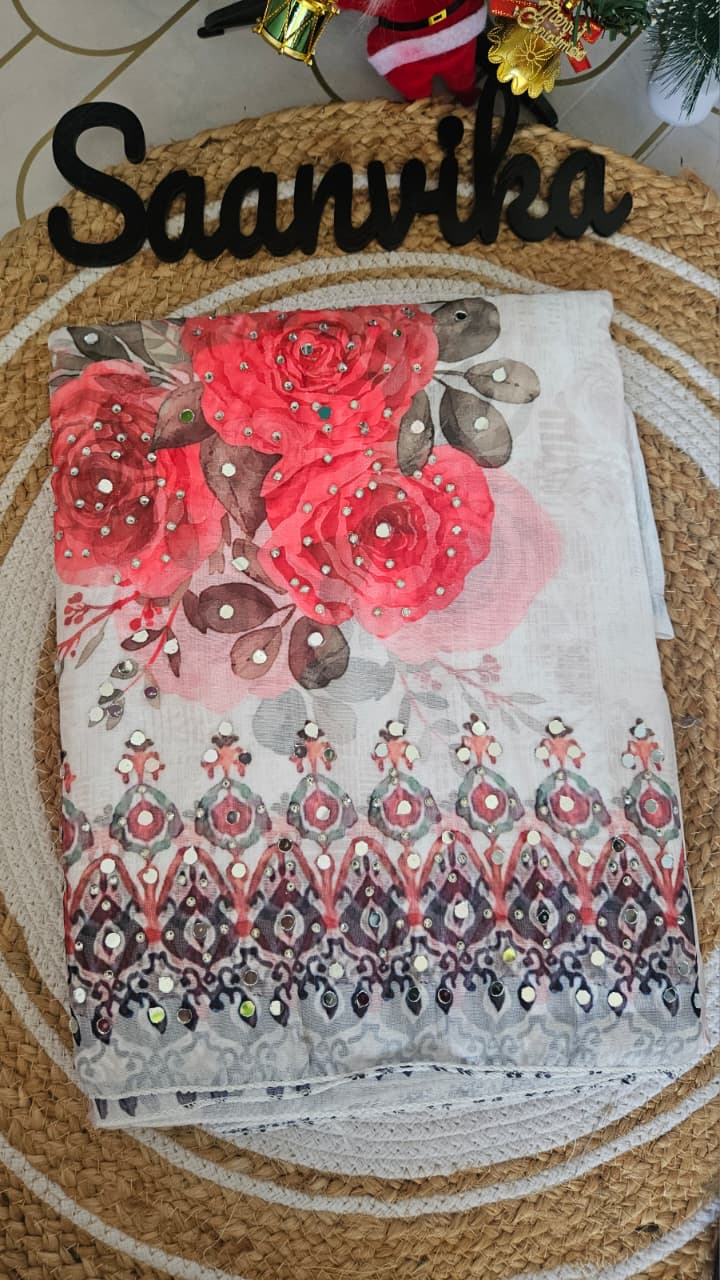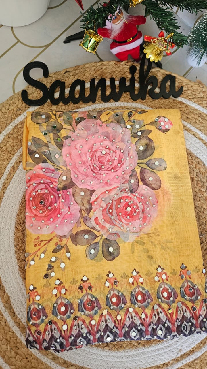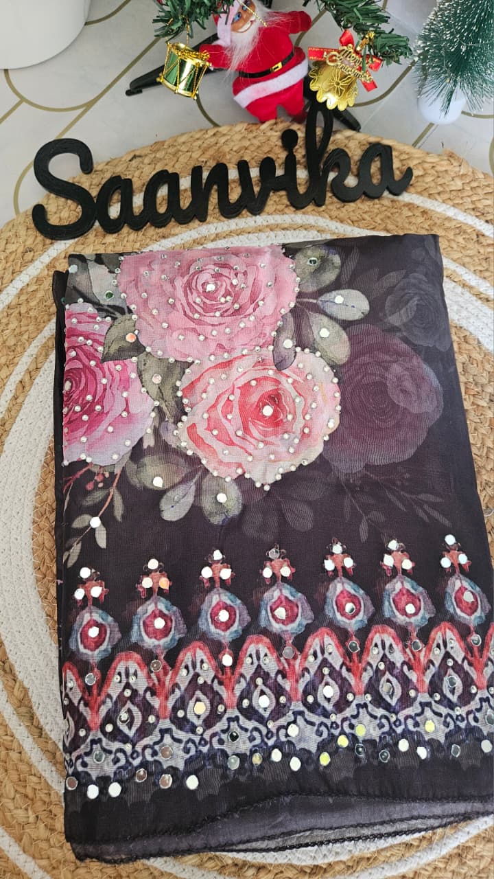 Semi Partywear Organza Digital Print and Mirror worked Unstitched Churidhar Material