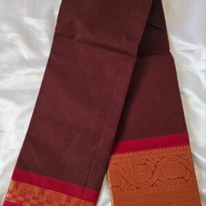 Elegant Kanchi Cotton saree with a beautiful brown and marron combination, finished with a rich zari border. A prefect blend of tradition and grace